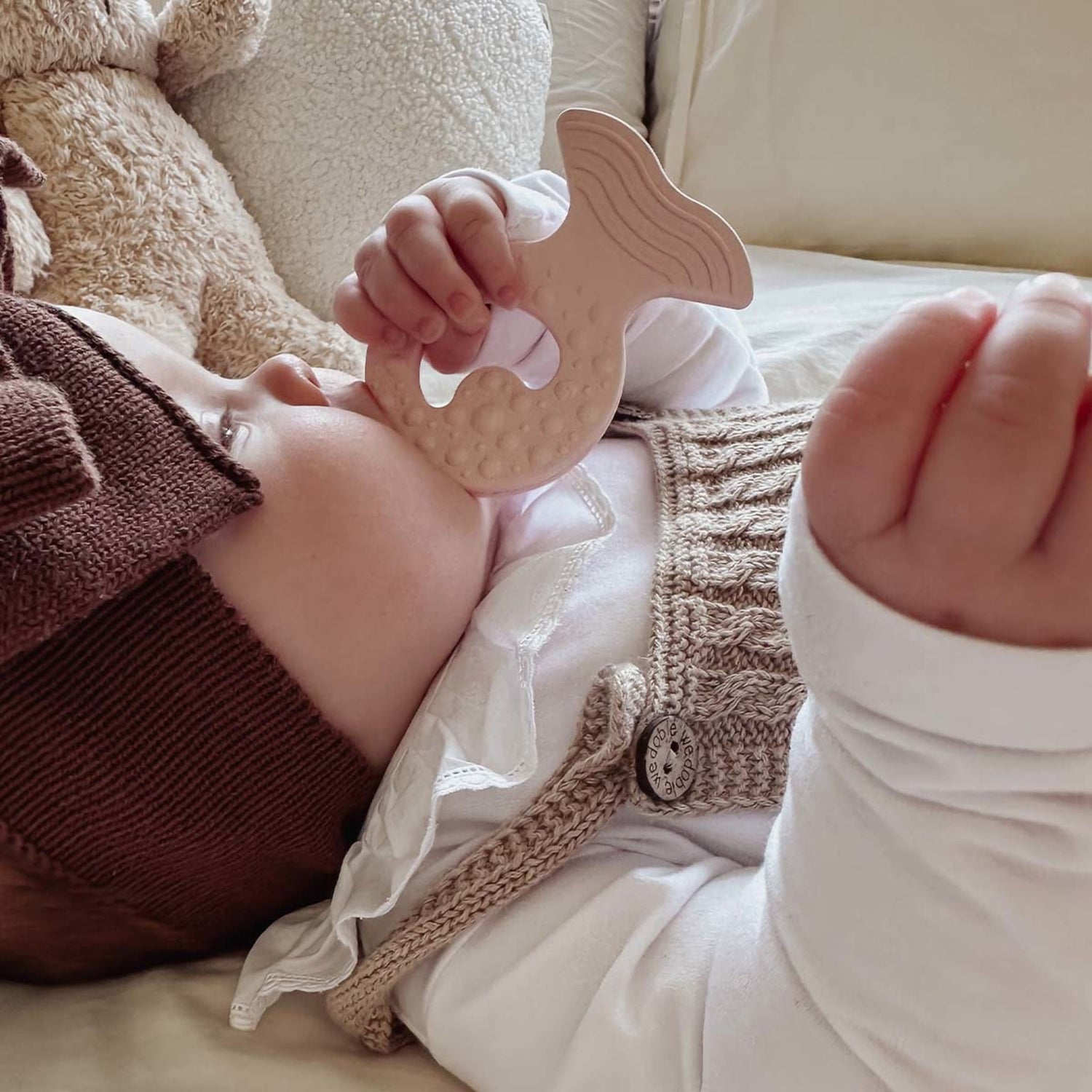 This two-pack HEVEA® Fish Teether & Kawan Teether Ring is made from 100% natural rubber and comes in beautiful color choices perfect for teething babies and toddlers in need of soothing. Easy to handle and grip for even the smallest of hands, with textured surfaces for relief when biting and chewing - soothing the most itchy and sore baby gums!