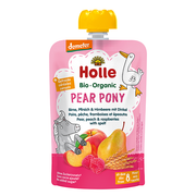 Holle Organic Food Pouch Pear Pony contains 100% pure demeter (highest organic quality) and organic certified fruit plus wholegrain spelt with absolutely no additives. Unsweetened and finely puréed in a resealable pouch for practical, mess-free portion feeding at home or on the go, Pear Pony is perfect as part of a filling breakfast, as an energy boosting snack or as a simple pudding.