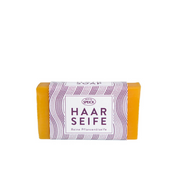Application: Lightly lather up the soap with your hands and massage it into the hair until a creamy foam is created. Then rinse hair thoroughly. Use an acidic rinse for dull hair (1 tbsp. vinegar / 800 ml water).