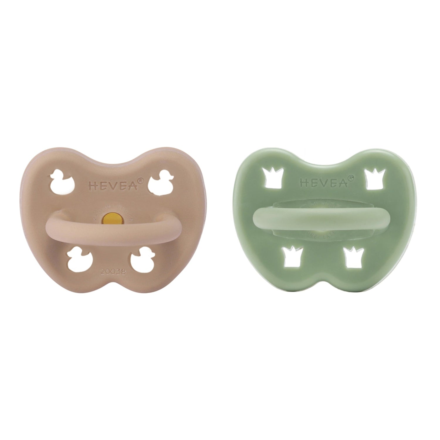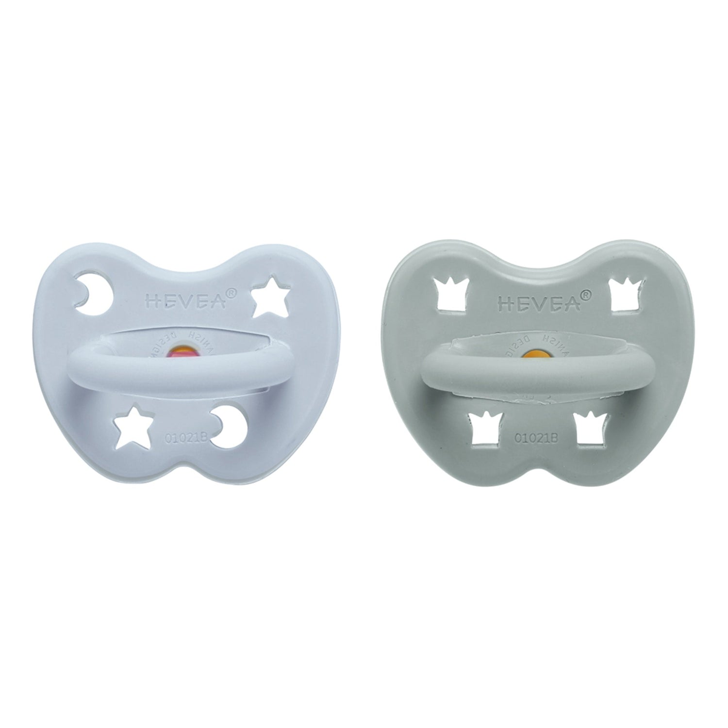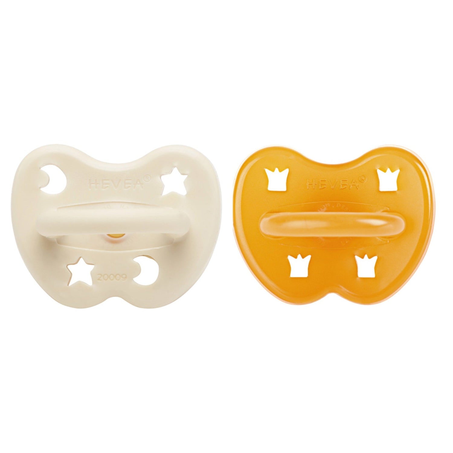 This two-pack of HEVEA® 100% Natural Rubber Pacifiers is perfect for babies and toddlers from 3 to 36 months. HEVEA pacifiers feature a seamless one-piece build that makes them easy to clean and hygienic. The natural rubber teat and face ensure the pacifier is soft to touch and gentle on your baby's face and lips. And the fun cut out shapes on the face ensure your baby’s safety while also having some adorable fun!