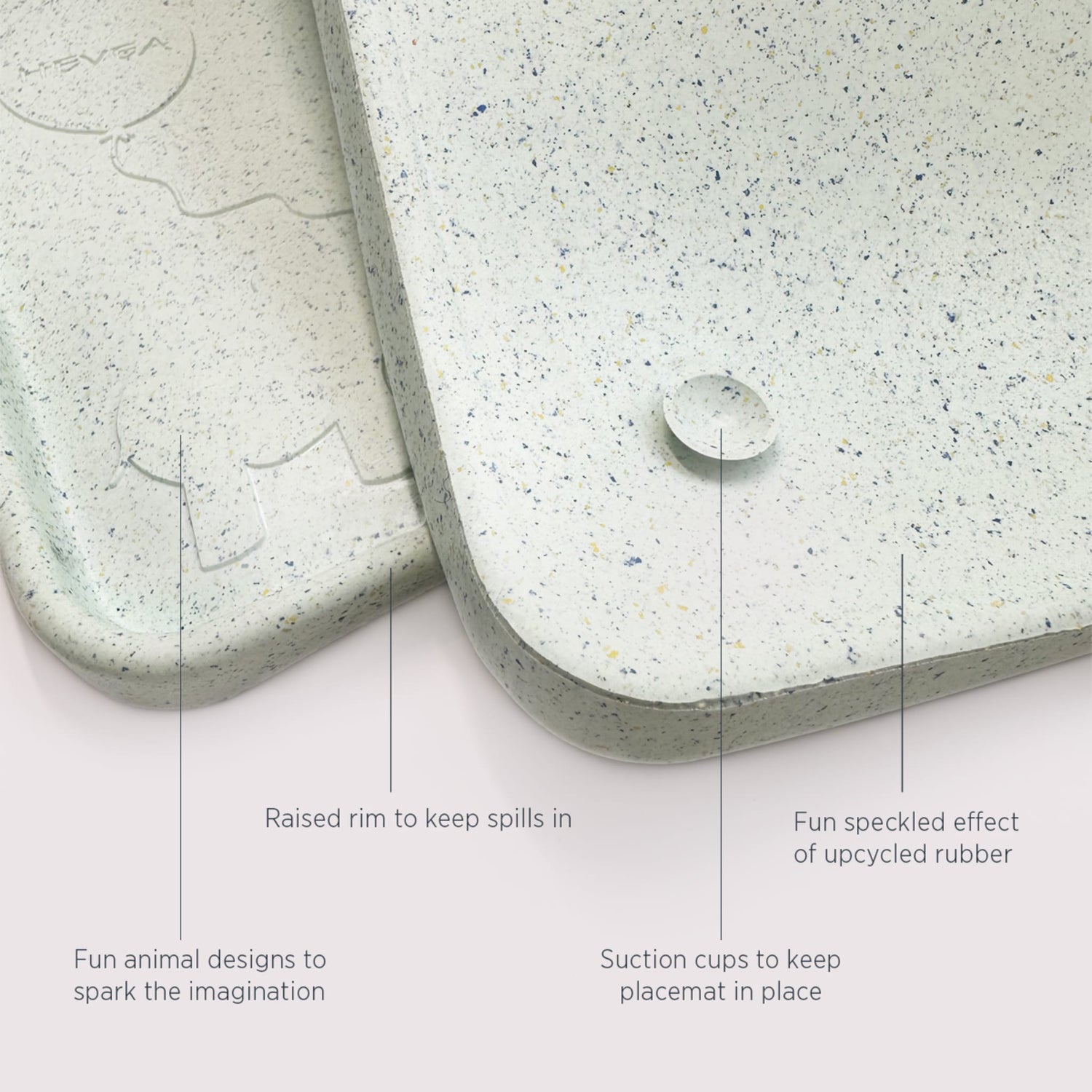 HEVEA placemats for kids are made from natural rubber - an alternative to silicone and plastic for environmentally-minded parents. Plus, HEVEA placemats are made with upcycled natural rubber off-cuts from the manufacturing process - limiting our waste even further!