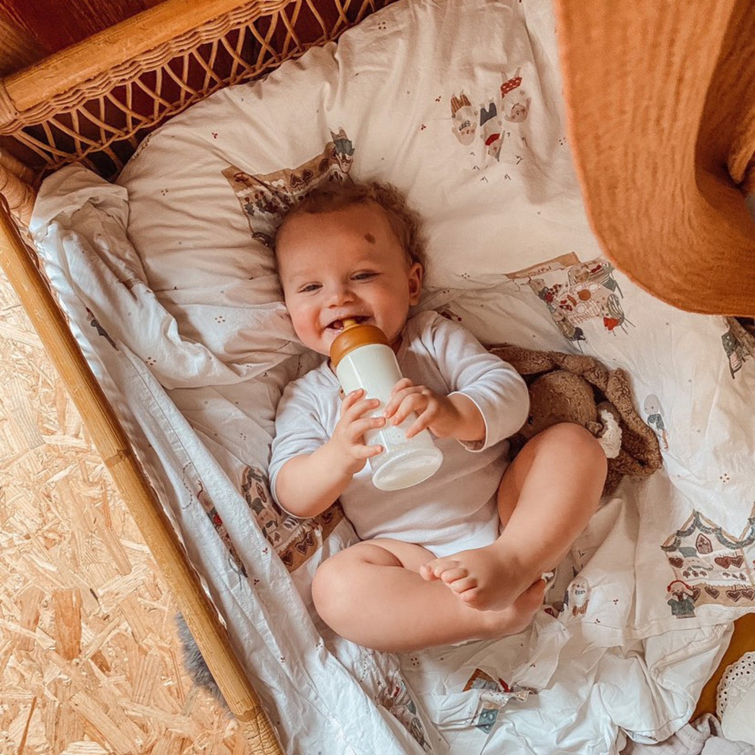 The one-piece design nipple is made entirely from our beloved 100% natural rubber, and seals onto the bottle neck perfectly tight - making additional plastic accessories unnecessary!